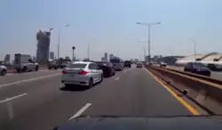 A dashcam still of an under-construction skyscraper collapsing at Kamphaeng Phet Road in Bangkok, Thailand.