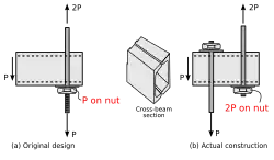 • The fifth cause of failure is from lack of consideration of unexpected problems. This type of failure can be caused by events such as vandalism, sabotage, or natural disasters. It can also occur if those who use and maintain the construction are not properly trained and overstress the structure.[4][5]