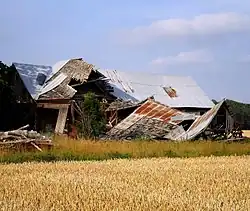 A collapsed barn at Hörsne-Bara on the Swedish island of Gotland.