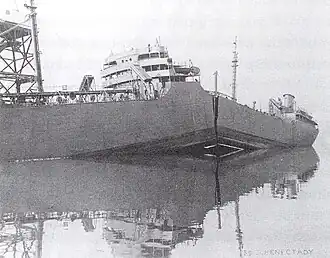 The American oil tanker SS Schenectady spilt in half in 1943 while sitting in a calm harbor, with a bang that could be heard "a mile away". The failure was attributed to weld stresses in the vicinity of squared bulkheads.