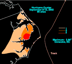 Total rainfall map of Gustav in North Carolina