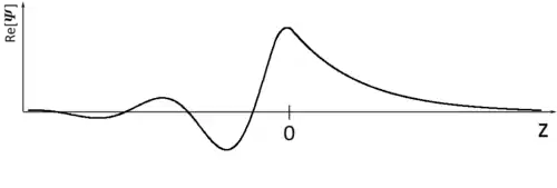 Figure 3. Real part of the type of solution to the one-dimensional Schrödinger equation that corresponds to surface states. These states decay into both the vacuum and the bulk crystal and thus represent states localized at the crystal surface.