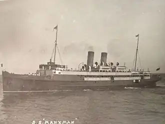 Manxman was completed in September 1904 and entered Midland Railway service on the Heysham to Douglas run. The Admiralty requisitioned her in January 1915.