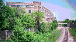 Rear of the old factory building, showing the old Milwaukee Road railroad tracks along the 30th Street Industrial Corridor, circa 2000
