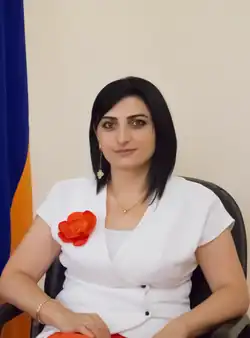 She studied at the Faculty of Humanities at the Armenian State Pedagogical University from where she graduated as an English guide translator in 2000 and a journalist in 2003.[1] In 2013, she graduated with a MSc in political science from the Armenian Academy of Public Administration.[1] She followed up on her studies in journalism in international standards of journalism at the Institute for War en Peace Reporting in Yerevan in 2004, and in a program on juridical journalism from the Association of European Journalists.[1] In 2014-2015 she participated in Democracy courses organized in Yerevan by the Council of Europe.[1]