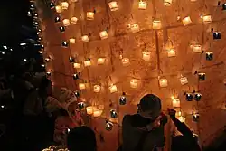Taunggyi Hot Air Balloon Festival (Burmese: တောင်ကြီးမီးပုံးပျံပွဲတော် MLCTS: Taunggyi mee pone pyan pwe daw ) also known as Taunggyi Tazaungdaing Festival is held on the full moon day of Tazaungmon, which is the eighth month of the traditional Burmese calendar. It is remarked as one of the Burmese traditional festivals,[1] celebrated yearly in Taunggyi, the capital city of Shan State, Myanmar.[2] The festival was first established with Buddhist religious meaning and changed into the traditional handicraft hot air balloon competition nowadays. While at the beginning of the festival, there was only one balloon participating, year by year the number of balloons increased, and today over 400 balloons take part. People from various religions participate in the festival, revealing a combination of traditional beliefs.[3][4]
