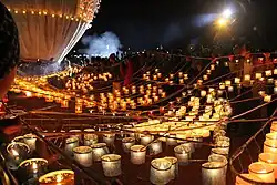 In ancient times, candles used during the festival were made of gooseberry wood and, people attempted to offer the candles as much as possible symbolising reverence for the Buddha, despite their inability to reach heaven, inspiring a sense of sacredness.[5] To overcome this, fire balloons are started to be used instead of candles, representing the homage to the Buddha.[3]