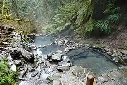 Terwilliger Hot Springs, also known as Cougar Hot Springs, are geothermal pools in the Willamette National Forest in the U.S. state of Oregon, 53 miles (85 km) east of Eugene.[1] The springs drain into Rider Creek, which in turn drains into Cougar Reservoir.[1] They are about a quarter mile from Forest Service Road 19, also known as Aufderheide Memorial Drive.[1][2]