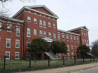 The West Building was built to be the new Colored Almshouse, also known as the new Colored Home.[3][4] It replaced the old "Colored Almshouse" and hospital which was opened in 1868.[5] It was located on what is now the grounds of the Hebrew Cemetery Annex. Those same grounds were the former location of the City Hospital for smallpox, along with a portion of the Shockoe Hill African Burying Ground. The new Colored Almshouse also housed a charity hospital for African-American residents of Richmond. The garage is a two-story masonry and wood frame two bay building. The Almshouse, later called the Richmond Nursing Home, continued to serve the less-fortunate members of the Richmond community until the late 1970s.[6][7] It is now in use again as a privately managed home for low-income residents.