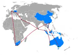 The Amazing Race Australia 1 is the first season of The Amazing Race Australia, an Australian reality competition show based on the American series The Amazing Race. Hosted by Grant Bowler, it featured eleven teams of two, each with a pre-existing relationship, in a race around the Eastern Hemisphere to win the grand prize of A$250,000. The show was produced by activeTV Australia.[1] This season visited four continents and eleven countries and travelled over 50,000 kilometres (31,000 mi) during twelve legs. Starting in Melbourne, racers travelled through Indonesia, Vietnam, Hong Kong, Macau, South Africa, the Netherlands, the Czech Republic, Poland, Israel, Sri Lanka and Singapore before returning to Australia and finishing in Perth. The show premiered on Australia's Seven Network on 16 May 2011.[2] The season finale aired on 1 August 2011.[3]