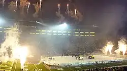 The University of Michigan added permanent lighting to Michigan Stadium in time for the event.[7] The University later announced that fireworks would be used when Michigan entered the ice during the game, as well as after every goal.[8] Following the national anthem, a flyover was conducted by a B-2 Stealth Bomber.[6]