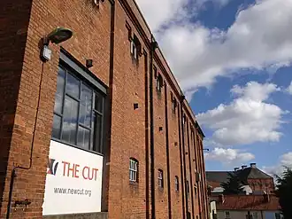 The Cut Arts Centre is a theatre in the Suffolk town of Halesworth. It is a centre for arts in the community and offers music, theatre, dance, comedy, cinema, workshops and art exhibitions to the local area. It has a cafe and licensed bar and is a registered charity, relying on the support of the local community and its Lottery Club benefactors. The Cut also houses businesses with rented office space.