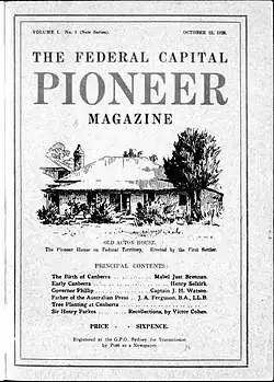 3. ^ a b "The Federal Capital Pioneer Magazine (Canberra, ACT : 1926 - 1927)". Trove. National Library of Australia. Retrieved 8 January 2017.