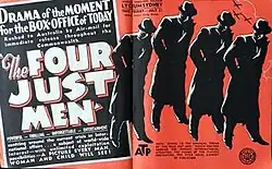 The Four Just Men, also known as The Secret Four, is a 1939 British thriller film directed by Walter Forde and starring Hugh Sinclair, Griffith Jones, Edward Chapman and Frank Lawton.[1] It is based on the 1905 novel The Four Just Men by Edgar Wallace. There was a previous silent film version in 1921.[2] This version was produced by Ealing Studios,[3] with sets designed by Wilfred Shingleton.