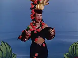 Miranda became known for the signature fruit hat outfit she wore in her American films, especially in The Gang's All Here.