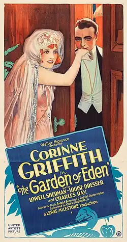 The Garden of Eden is a 1928 American silent comedy drama film directed by Lewis Milestone and starring Corinne Griffith, Louise Dresser, and Lowell Sherman.[2][3][4] It was adapted from Avery Hopwood's short-lived stage production of the same name.