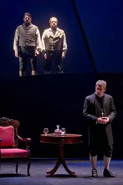 Father Jean Cheverus (William Hite) with James Halligan (Keith Phares) and Dominic Daley (Alan Schneider) in a scene from The Garden of Martyrs