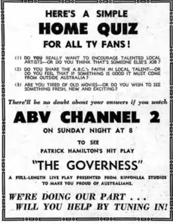 - ^ "Line Up of TV Dramas for Sunday Night". The Age. 26 September 1958. p. 24.