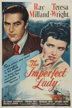 The Imperfect Lady is a 1947 American historical drama film directed by Lewis Allen and starring Ray Milland, Teresa Wright and Cedric Hardwicke, filmed in 1945 and not released until 1947. In the late Victorian Britain an aristocratic politician falls in love with a showgirl. The film is also known by the alternative title Mrs. Loring's Secret.