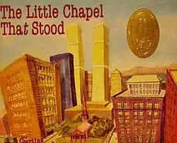 The Little Chapel That Stood is a 2003 children's picture book with verses by A. B. Curtiss and pictures by Mirto Golino.[1] It tells the story of the September 11 attacks by focusing on St. Paul's Chapel, a historic chapel which is located less than 100 yards (91 m) from the destroyed Twin Towers; the chapel survived intact and became a haven for rescue workers in the days after the attacks.[2][3][4] The book's cover features a watercolor painting by Mirto Golino that depicts the chapel surrounded by high rises in Manhattan in 2001, including the North and South Towers of the World Trade Center. The title is a nod to the children's picture-book classic The Little Engine that Could by Watty Piper.[5]