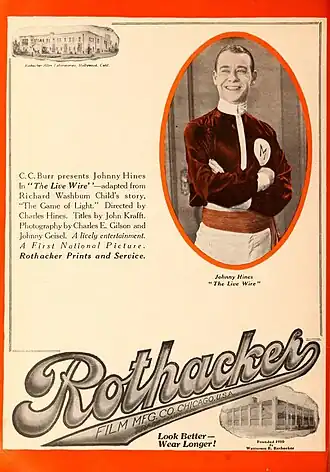 Johnny Hines "The Live Wire" ad in Motion Picture News, 1925