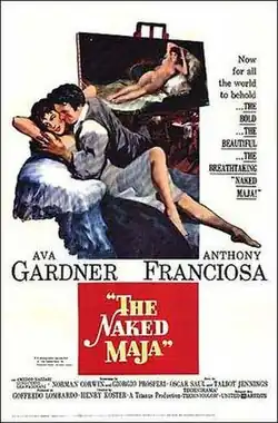 The Naked Maja is a 1958 Italian-American co-production made by S.G.C., Titanus, Metro-Goldwyn-Mayer and United Artists.[2][3] This historical film recounting of the romance between the painter Francisco Goya and the Duchess of Alba was directed by Henry Koster, and produced by Silvio Clementelli and Goffredo Lombardo. The screenplay was by Norman Corwin, Giorgio Prosperi and Albert Lewin based on a story by Oscar Saul and Talbot Jennings. The music score was by Angelo Lavagnino and the cinematography by Giuseppe Rotunno.