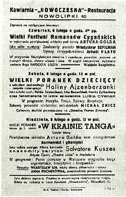 Café Nowoczesna poster advertising several performers, including Władysław Szpilman, 1941