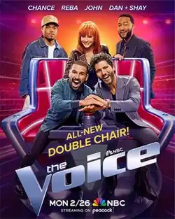 The twenty-fifth season of the American reality television series The Voice premiered on February 26, 2024, on NBC. The season is presented by Carson Daly, who returned as the host for his twenty-fifth season. The coaching panel consists of John Legend and Reba McEntire, who return for their ninth and second seasons, respectively; returning coach Chance the Rapper, who returns for his second season following a one-season hiatus; and debuting coaches Dan + Shay, who join the panel as the show's first coaching duo.