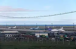Tiksi Aerodrome (IATA: IKS, ICAO: UEST) is located 1 km (0.6 mi) northeast of Tiksi, Russia, and was built in the 1950s as a staging base for Soviet Long Range Aviation bombers to reach the United States (as a so-called 'bounce' aerodrome). It is used regularly by Tupolev Tu-95 aircraft in military exercises, including one in 1999, in which bombers practice travelling to the Canadian arctic. Two other nearby airfields known as Tiksi North and Tiksi West have been abandoned for decades, and are probably unusable, according to satellite imagery.