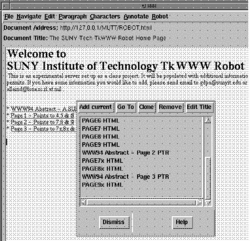 Scott Spetka presented a paper at the Mosaic and the Web Conference in Chicago entitled "The TkWWW Robot" in October 1994.[50][51] TkWWW robot was one of the first web crawlers and internet bots based on tkWWW. It was developed over the summer at the Air Force Rome Laboratory, with funding from the Air Force Office of Scientific Research,[52] to build HTML indexes, compile WWW statistics, collect image portfolios, etc.[52]  TkWWW robot's major advantage was its flexibility in adapting to virtually any criteria to guide its search path and to control its selection of data for retrieval.[50][53]
