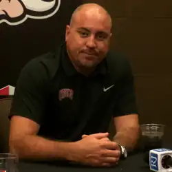 Anthony Phillip Sanchez (born January 25, 1974)[1] is an American college football coach and former wide receiver, who is the current head football coach at New Mexico State University, his alma mater. He was the head football coach at the University of Nevada, Las Vegas (UNLV) from 2014 to 2019.[2][3] Before that, he was the head football coach at Bishop Gorman High School in Las Vegas.
