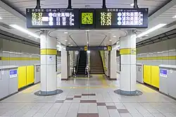 The station has an underground island platform serving two tracks. The platforms are equipped with waist-height platform edge doors.