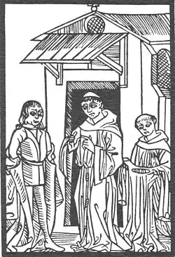 The narrative of Owein's visit begins with an account of how the knight was moved to make reparation for his sins after attending confession. On entering the cave he made his way to a great field in which was a hall which resembled a cloister. There he was greeted by fifteen men who appeared to be monks and were dressed entirely in white. Their prior gave Owein advice on how he should complete his journey safely, by calling on the name of Jesus Christ if ever he found himself in difficulty. Shortly after the men had departed Owein heard a great roar and a vast number of demons rushed towards him. These demons bind Owein and throw him into a fire, but he is delivered when he calls on Christ.