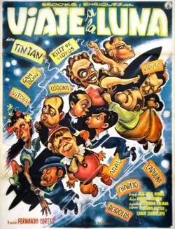 Trip to the Moon (Spanish:"Viaje a la luna'") is a 1958 Mexican comedy film directed by Fernando Cortés, featuring Kitty de Hoyos, and an ensemble cast of comedians such as Sergio Corona, Alfonso Arau, Germán Valdés (Tin-Tan), Viruta and Capulina, Manuel 'Loco' Valdés, Fannie Kauffman 'Vitola', Leopoldo 'Polo' Ortin,Joaquín García Vargas 'Borolas', Ramiro Gamboa 'Tio Gamboin' and Xavier López 'Chabelo'.[1][2]