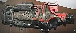 Small RP4 steam turbo generator set 500W/24V for a steam locomotive: alternator (left) + turbine (right)