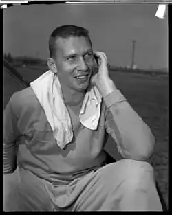 Edwin C. Horrell was promoted to head coach following Spaulding's retirement.[12] His 1942 UCLA Bruins team lost to Georgia in the 1943 Rose Bowl.[13] He was the first coach to lead a UCLA team to defeat rival USC.[12] It was the first football victory in the UCLA–USC rivalry. The most notable player who played for Horrell at UCLA was Jackie Robinson, who went on to a Hall of Fame career in professional baseball.[12] Horrell's 1939 team compiled a 6–0–4 and his 1941 team posted a 5–5–1 record.[13] With the exception of the 1942 season, the combined record of the Bruins during Horrell's tenure outside the aforementioned seasons was 6–22–1.[13] These struggles led to Horrell's firing after six seasons at the helm of UCLA football.[12]