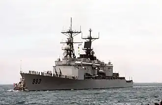 USS Kidd (DDG-993) was the lead ship in her class of destroyers operated by the U.S. Navy. Derived from the Spruance-class, these vessels were designed for air defense in hot weather. The vessel was the second named after Medal of Honor recipient Rear Admiral Isaac C. Kidd, who was aboard USS Arizona during the attack on Pearl Harbor, and was the first American flag officer to die in World War II.