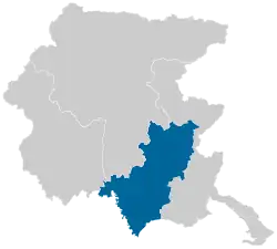 The Udine-district is composed by 42 comuni: Bagnaria Arsa, Bicinicco, Buttrio, Campoformido, Carlino, Castions di Strada, Chiopris-Viscone, Cividale del Friuli, Cordovado, Corno di Rosazzo, Gonars, Latisana, Lignano Sabbiadoro, Manzano, Marano Lagunare, Moimacco, Morsano al Tagliamento, Mortegliano, Muzzana del Turgnano, Palazzolo dello Stella, Palmanova, Pavia di Udine, Pocenia, Porpetto, Pozzuolo del Friuli, Pradamano, Precenicco, Premariacco, Remanzacco, Rivignano Teor, Ronchis, San Giorgio di Nogaro, San Giovanni al Natisone, San Vito al Torre, Santa Maria la Longa, Talmassons, Tavagnacco, Torviscosa, Trivignano Udinese, Udine, Varmo and Visco.[1]