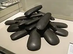The museum contains significant finds from Northern Ireland, although in earlier periods these were often sent to the British Museum or later Dublin, as with the Broighter Hoard, now in the National Museum of Ireland. Objects in the museum include the Malone Hoard of 19 polished Neolithic axe heads, the Moss-side Hoard of Mesolithic stone tools, the important Downpatrick Hoard of Bronze Age gold jewellery, part of the Late Roman Coleraine Hoard, the Viking Shanmullagh Hoard, and the medieval coins in the Armagh City Hoard and Armagh Castle Street Hoard.[12]