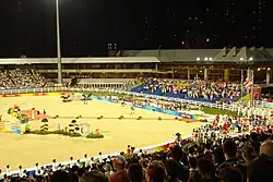 During the first part of the August 15 preliminary round, Latifah Al Maktoum and her horse Kalska De Semilly accrued eight penalty points from jump penalties and three points from time penalties, earning eleven penalty points overall.[15] Of the 77 competitors in this first portion of the event, she tied with Saudi Arabia's Faisal Al-Shalan and Kamal Bahamdan for 61st overall.[17] In the second round, the pair accrued twelve jumping penalty points and three for time penalties.[15] This placed Latifah Al Maktoum 54th out of 70 finishing riders, tying Bahamdan and Bruce Goodin of New Zealand, and she was eliminated from the competition.[18]