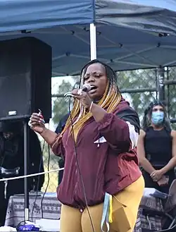 Letha Winston, mother of Patrick Kimmons, speaks at Irving Park in Northeast Portland during the George Floyd protests of 2020