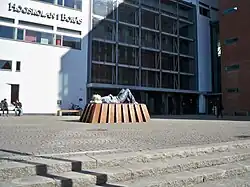 The sculpture Catafalque (2003) by Sean Henry outside the university library building.