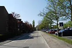 The municipal coat of arms is first recorded in 1780. Its blazon is Argent on a pile enbowed Sable a Latin Cross pattee of the first.[4] Following the 1798 French invasion, the old power structure was wiped away. Five years later, after the Act of Mediation, Urtenen became part of the district of Fraubrunnen. The village was damaged when the Urtenen river flooded in 1780, 1855 and 1917. An amelioration project in 1944-46 lowered the river's level and built flood walls to protect the village.[3] During the 19th century many farmers shifted from raising food crops to raising dairy cattle and in response the first village dairy opened in 1842. Historically the main road from Bern to the Aargau bypassed the village. That all changed in the 18th and 19th centuries. In 1845-48 the Bernstrasse was built through the village, connected Urtenen with Bern and the Aargau. Other roads followed, connecting the village with Solothurn and Biel. These were followed by a railroad to Olten in 1867 and another to Solothurn in 1916.