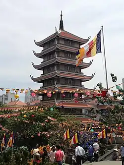 Vĩnh Nghiêm Pagoda (Chùa Vĩnh Nghiêm; literally Ever Solemn) is a pagoda in an area of 6,000 square metres (65,000 sq ft) at 339, Nam Kỳ Khởi Nghĩa street, Ward 7, District 3 Ho Chi Minh City. This is the first pagoda in Vietnam to be built in Vietnamese traditional architecture style but with concrete. The highest structure in this pagoda is the 7-story, 40-metre-high (130 ft) tower. This pagoda houses and worship of one buddha and two bodhisattvas: Gautama Buddha, Manjusri, Samantabhadra. The Peace Bell was donated by a monk of Entsuji Temple in Fukushima, Japan.[1] The seven-storey tower was built with the assistance of the Japan-Vietnam Friendship Association.[2]