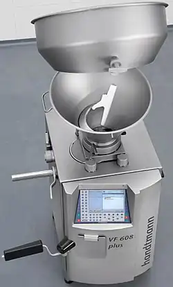 A vacuum filler is a machine used for filling pasty products.[1] The pasty products are moved with the aid of a vane cell feed system under a vacuum.