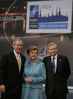 Vaira Vīķe-Freiberga GCB OC OQ (née Vīķe; born 1 December 1937) is a Latvian politician who served as the sixth president of Latvia from 1999 to 2007. She is the first and to date only woman to hold the post and the most recent to be re-elected for a second term.