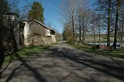 Horní Waldorf is located on the opposite side of the hill. A path passes through its center and climbs up to elevation 447, where the cross is located. Most of the buildings are scattered along this road. Below this part, there are three ponds in the valley on the stream.