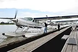 The Vancouver International Water Airport (TC LID: CAM9) is located on Inglis Drive, a short distance from the South Terminal. This facility allows floatplanes to land and dock on the South Arm of the Fraser River. The facility is served by all floatplane operators other than Harbour Air, which maintains a separate dock and terminal at the Flying Beaver Bar and Grill nearby.[32]