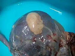 A vanishing twin, also known as twin resorption, is a fetus in a multigestation pregnancy that dies in utero and is then partially or completely reabsorbed.[1][2] In some instances, the dead twin is compressed into a flattened, parchment-like state known as fetus papyraceus.[3]
