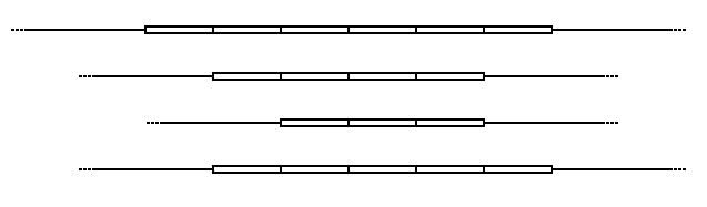 Schematic of a variable number of tandem repeats in four alleles.